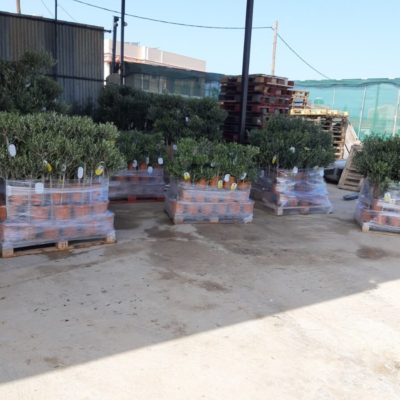 We have the fullest collection of olive varieties(all olive varieties), citrus nurseries(lemon, orange, mandarin, grapefruit, bergamot, pomelo, kumquat, lemanderin, Mexican lime, finger lime etc) pistachio nurseries (Aeginis, Pontikis, Kerman & Sierra) fruit trees (pomegranate tree, fig tree, loquat, apricot tree, mulberry (ornamental) kiwi) , vaccinated carob trees and ornamental tree nursery. We have varieties, olive nurseries and citrus nurseries in pots from 1.5L for annuals up to 500L for perennials with fruits.